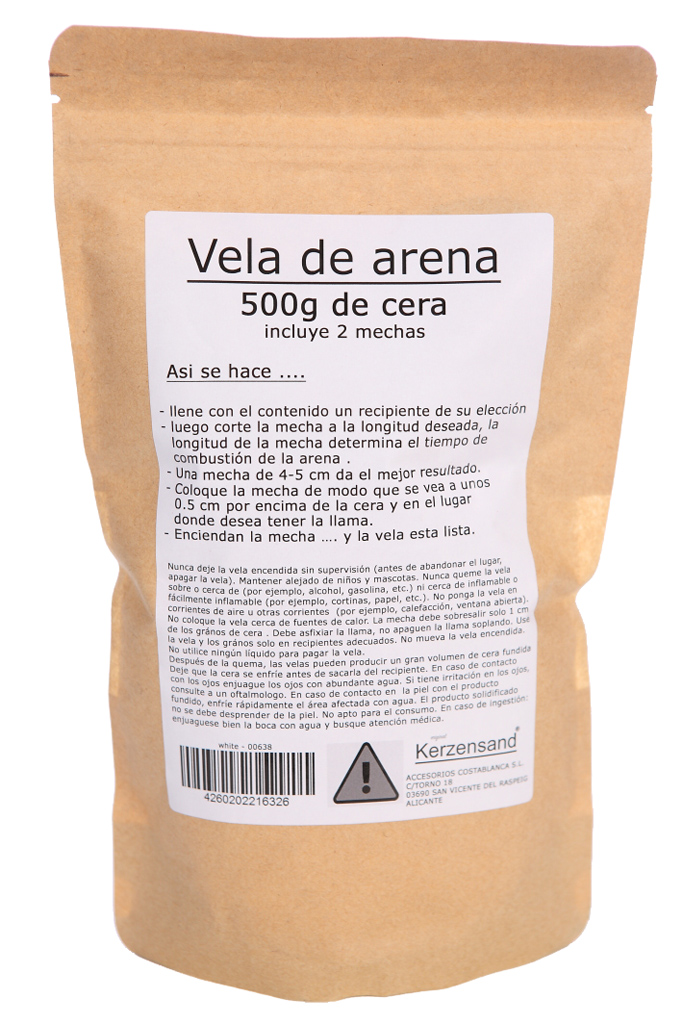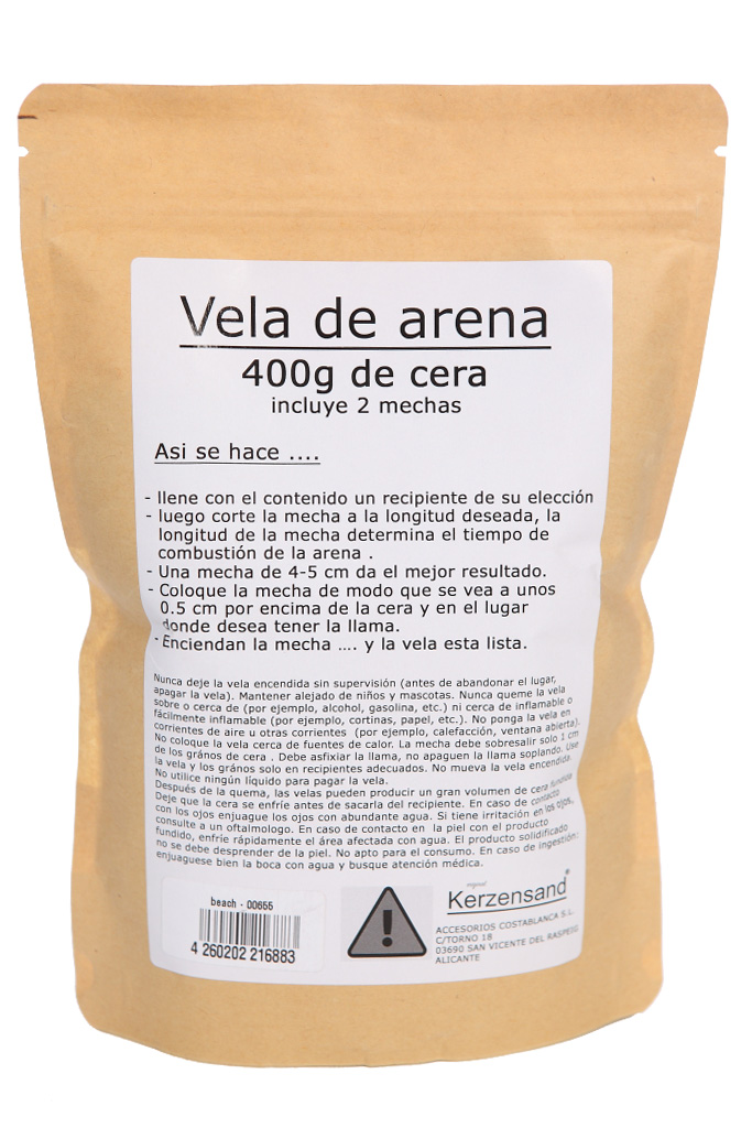 VELA DE ARENA SIN PARAFINA CON 2 MECHAS